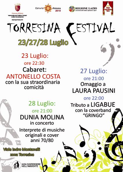 Da oggi fino a mercoledì 28 luglio alle ore 21.00 l’Estate Romana sarà presente a Torresina. Appuntamento a questa sera con la presentazione delle iniziative da parte degli organizzatori. Partecipate numerosi!!!