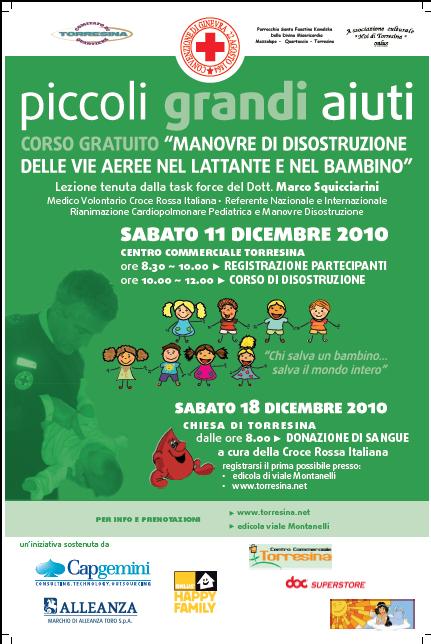 La mattina di sabato 11 dicembre al Centro Commerciale Torresina (via Andrea Barbato, Roma) si terrà una lezione interattiva gratuita sulle manovre di disostruzione pediatrica rivolta a tutti gli interessati che hanno aderito all’iniziativa;