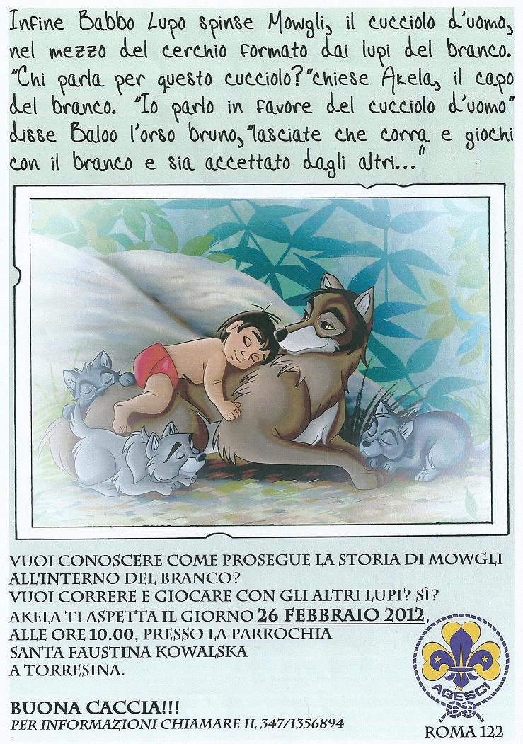Akela ti aspetta domenica 26 febbraio 2012 alle ore 10.00, presso la parrocchia Santa Faustina Kowalska a Torresina. Buona caccia !!!