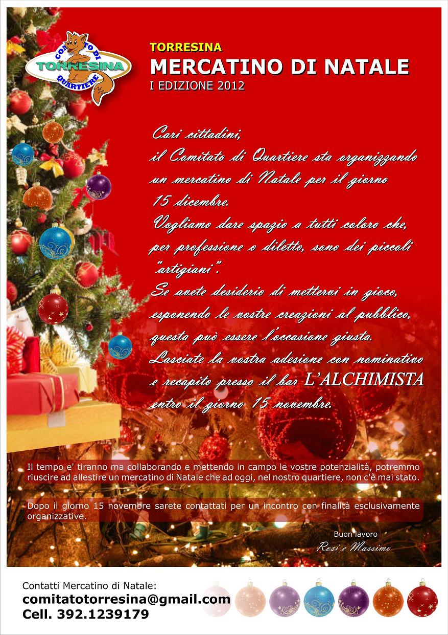 Il tempo e’ tiranno ma collaborando e mettendo in campo le vostre potenzialità, si potrà riuscire ad allestire un mercatino di Natale che ad oggi, a Torresina, non c’è mai stato.