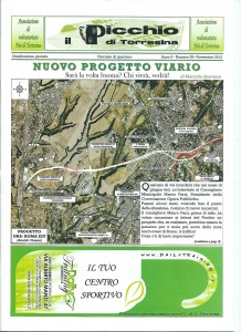 Novembre ancora tarda a mostrarsi, mantenendo un tepore innaturale. Anche questo mese Il Picchio di Torresina è arrivato per informarci di quello che succede intorno a noi. Una storia bruttissima dal S. Maria della Pietà, un nuovo progetto viario e l’intervista a Mauro Ferri consigliere municipale, Via Torrevecchia on-line, il mercatino di Natale a Torresina. Il nostro psicologo ci invita a migliorare la salute, cambiando gli stili di vita; la dietologa parla degli agrumi. Il Picchio ci ricorda come nasce la crisi economica attuale, quanto costa avere un figlio, come visitare un’opera d’arte… e poi le rubriche, le lettere e le poesie dei lettori, le perle di Zia Pina, Visti per voi, Letti per voi, tante news, le dediche e l’immancabile ricetta.