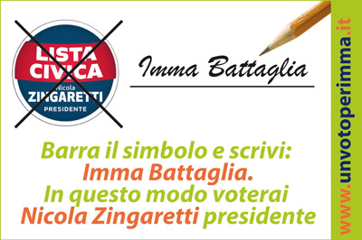 Come mai prima d’ora, in queste elezioni saranno le persone a fare la differenza. Gli elettori e le elettrici, con il coraggio di scegliere una politica differente. I singoli candidati e le singole candidate con la loro onestà e la loro storia di lavoro al servizio delle persone. Per questo alla Regione Lazio chiedo a chi crede in me, conosce la mia competenza, la mia onestà e il mio attivismo ventennale per i diritti e l’uguaglianza delle persone, di  barrare il simbolo della lista civica di Nicola Zingaretti e scrivere Imma Battaglia.
