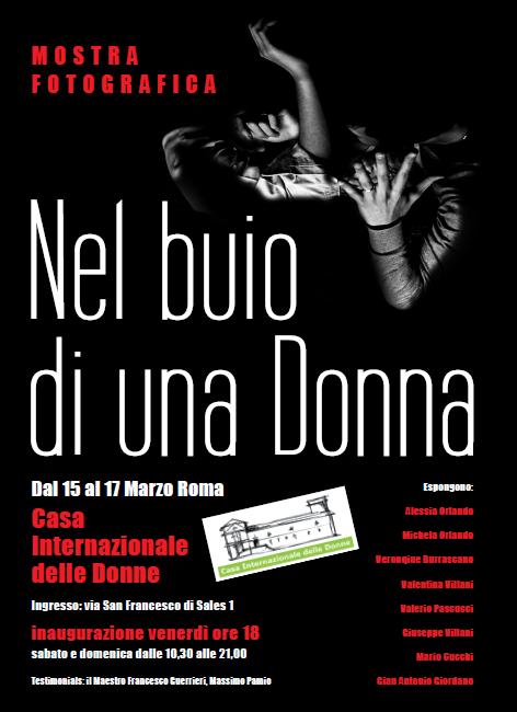 La Casa Internazionale delle Donne ospiterà nel suo atelier la mostra fotografica Nel buio di una Donna. Inaugurazione venerdì 15 marzo alle ore 18:00 – Ingresso: via Francesco di Sales n. 1 – Sabato 16 e Domenica 17: dalle ore 10:30 alle ore 21:00.
