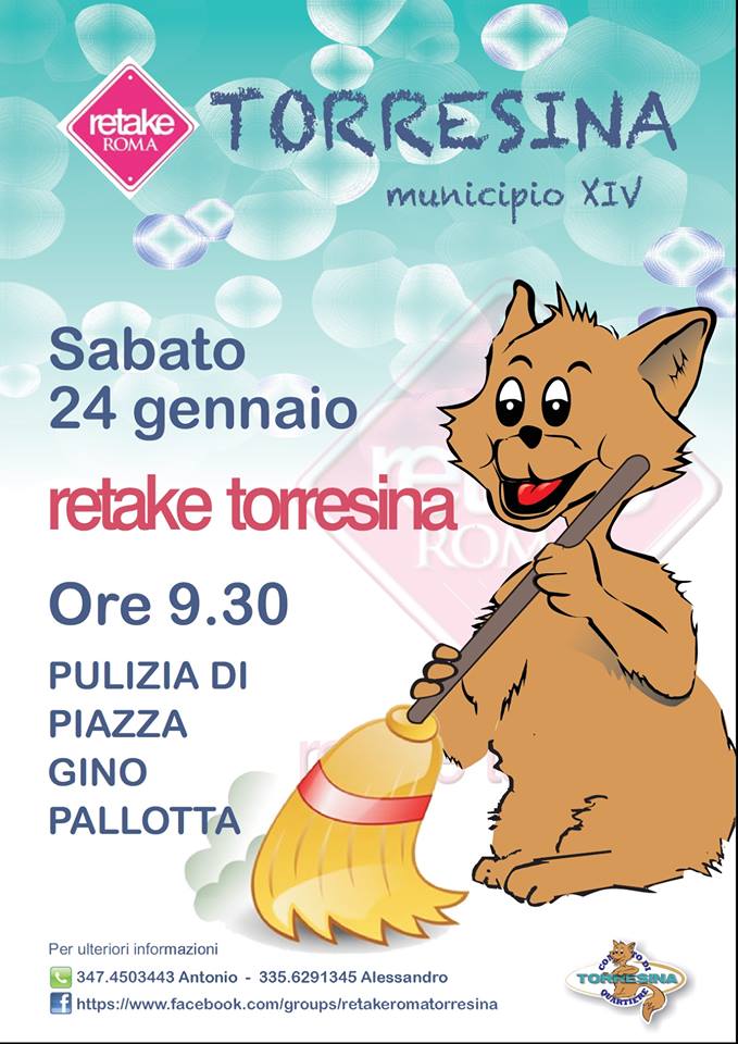 Dopo un rinvio di un paio di mesi, dovuti alle avversità meteo ed alle festività natalizie, si è svolta sabato 24 gennaio la pulizia di piazza Gino Pallotta a cura del Comitato di Quartiere ed il gruppo Retake di Torresina.