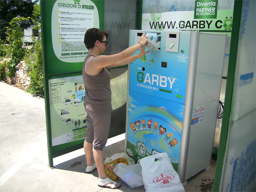 Installazione di almeno dieci raccoglitori automatici di rifiuti di imballaggi In plastica e metallo.
