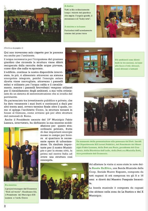 Sono passati 10 anni dall’inaugurazione del Nido nel Verde a Torresina; quel pomeriggio di giovedì 24 aprile 2008, era presente l’ex presidente del XIX Municipio (ora XIV) Fabio Lazzara e la struttura divenne operativa dopo pochi giorni dall’inaugurazione. E mentre all’inizio di aprile è stato presentato il progetto di SCUOLA MATERNA (Volo della Farfalla), andiamo a rileggerci qualche particolarità della struttura.