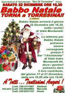 L’Associazione Culturale Noi di Torresina vi invita a partecipare alla IX Edizione di “BABBO NATALE TORNA A TORRESINA”