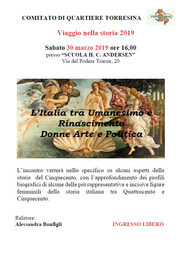 Sabato 30 marzo Incontri di Storia. L’Italia fra Umanesimo e Rinascimento: Donne, Arte e Politica