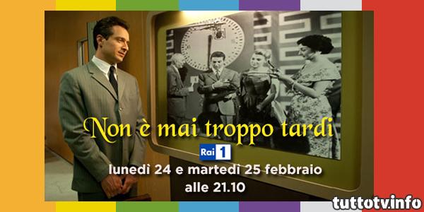 Fu scelto per presentare il programma Non è mai troppo tardi, concepito come strumento di ausilio nella lotta all’analfabetismo. Il programma, che lo rese famoso, riproduceva in televisione delle vere e proprie lezioni di scuola primaria, con metodologie didattiche innovative (Manzi al suo “provino” strappò il copione che gli era stato dato e improvvisò una lezione alla sua maniera), dinanzi a classi composte di adulti analfabeti o quasi. La trasmissione andò in onda per ben nove anni, e fu di grande interesse e di grande rilevanza sociale: si stima che quasi un milione e mezzo di persone abbiano conseguito la licenza elementare grazie a queste lezioni a distanza, svolte di fatto secondo un vero e proprio corso di scuola serale. Le trasmissioni avvenivano nel tardo pomeriggio, prima di cena; Manzi utilizzava un grosso blocco di carta montato su cavalletto sul quale scriveva, con l’ausilio di un carboncino, semplici parole o lettere, accompagnate da un accattivante disegnino di riferimento. Usava anche una lavagna luminosa, per quei tempi assai suggestiva. La ERI, casa editrice della RAI, pubblicava materiale ausiliario per le lezioni, quali quaderni e piccoli testi.