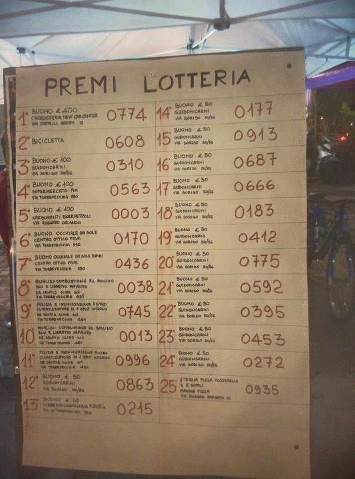 Estrazione di DOMENICA 11 GIUGNO ALLE ORE 22:30 presso il PARCO GIOCHI ZIETTA LIU’.
