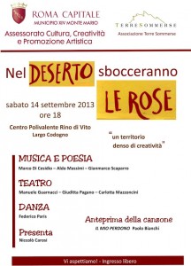 Sabato 14 settembre ore 18,00 presso il centro polivalente Rino Di Vito si terrà l’iniziativa “Nel deserto sbocceranno le rose“.