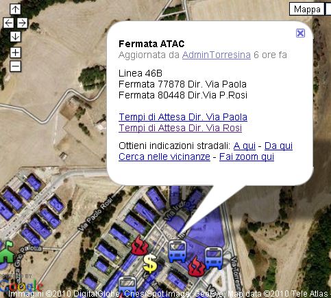 Una piccola nota. Nelle mappe stiamo salvando le posizioni delle fermate degli autobus, con i relativi numeri di palina. Aggiungendo il link al sito di atacmobile direttamente con la pagina di informazione dei tempi di attesa dell’autobus alla fermata.