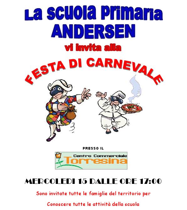 Mercoledì 15 febbraio dalle ore 17,00 presso il centro commerciale Torresina “Festa di Carnevale” sono invitate tutte le famiglie del territorio per conoscere tutte le attività della scuola.