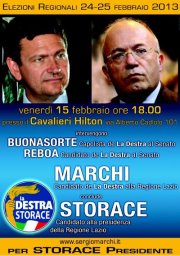 vi aspetto venerdì 15 febbraio alle ore 17.00 in Largo Donaggio per andare con il pullman all’Hotel Cavalieri Hilton dove incontreremo Sergio Marchi (candidato alla Regione Lazio) e Francesco Storace.