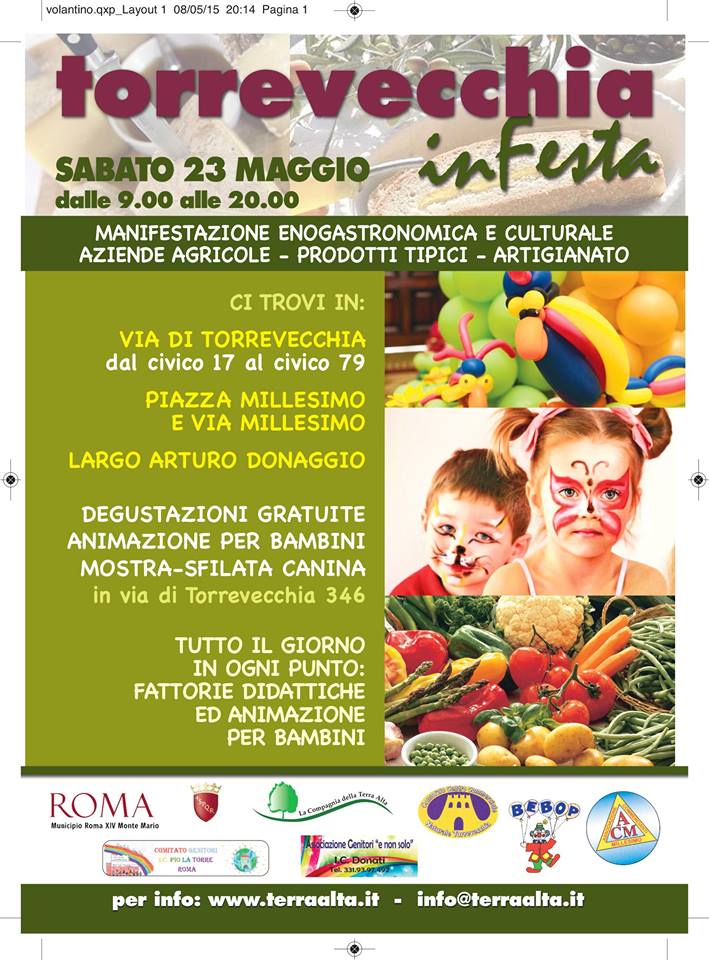 Sabato 11 ottobre per tutta la giornata, la seconda edizione di “Torrevecchia in festa” organizzata dal Centro Commerciale Naturale di Torrevecchia con il patrocinio del Municipio XIV . Un evento per cittadini grandi e piccoli , i commercianti ed il quartiere.